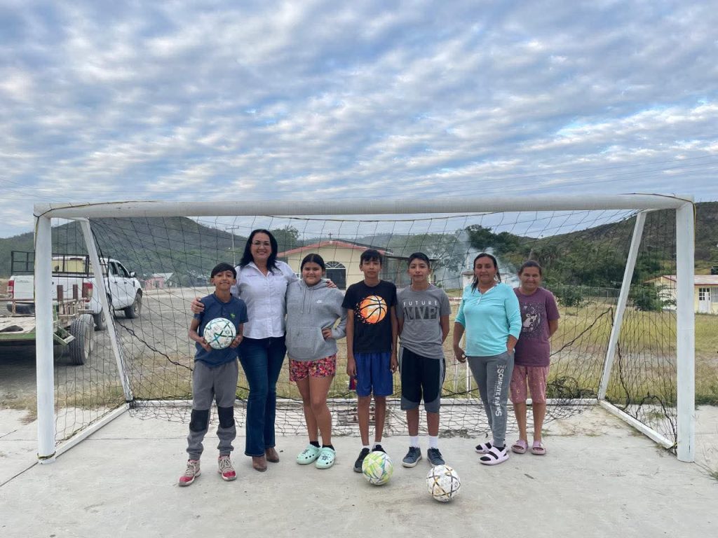 Nuevo Morelos, Tamps.- La tarde de ayer 10 de Noviembre, la alcaldesa Yaneth Nájera encabezó la entrega de porterías, redes y balones en el Ejido Emiliano Zapata, fortaleciendo así los espacios destinados al deporte y la recreación.